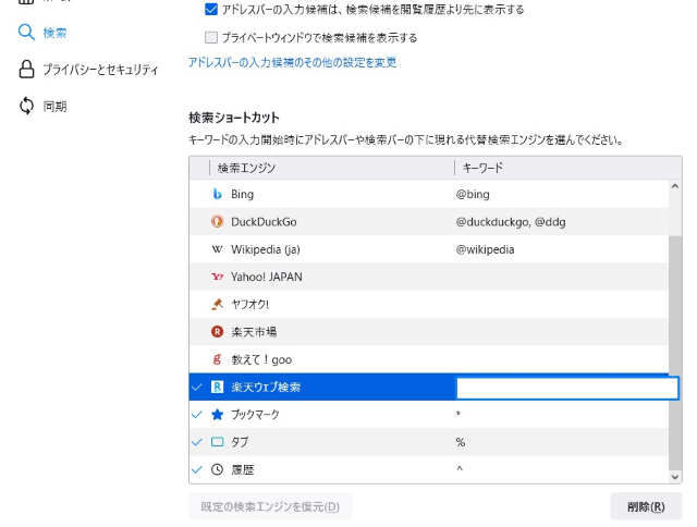 FireFoxに楽天ウェブ検索などのOpenSearch 検索エンジンを追加する方法です。